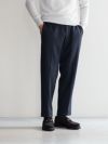 ウールブレンド生地のイージーパンツ。ウエストは快適な履き心地が叶うゴム仕様で、フロントのドローコードでサイズの微調節も可能でです。