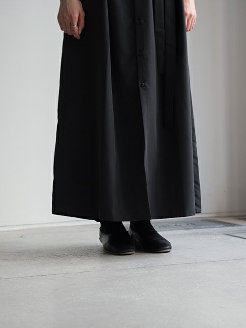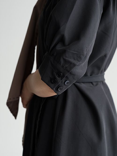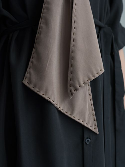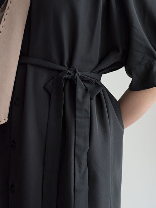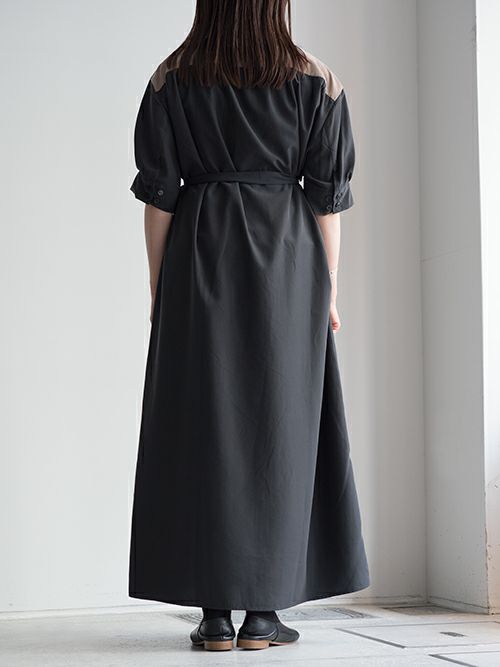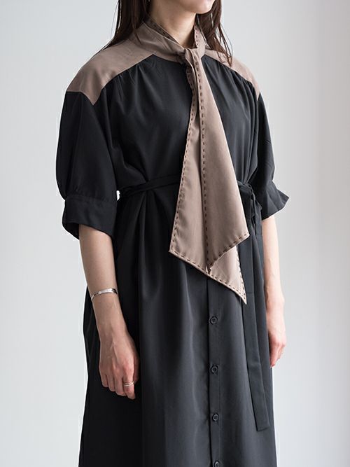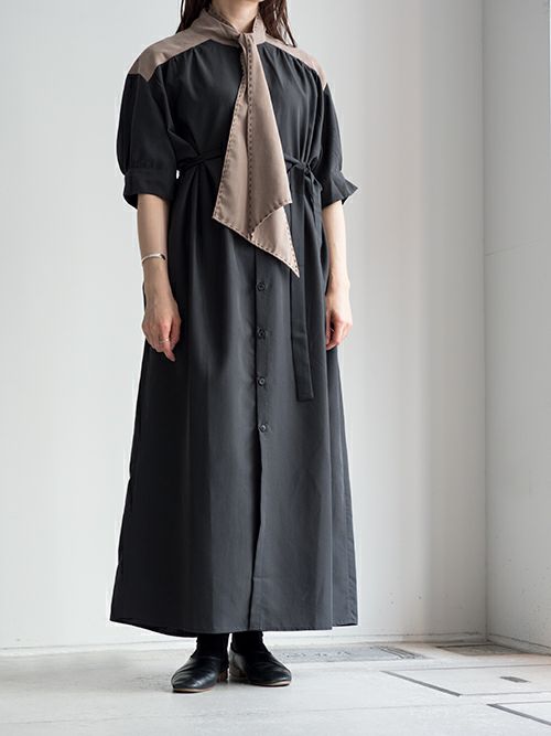 繊細なディティールが際立つ、ブラウスライクなロングワンピース。肩ヨーク部分のバイカラーデザインと、丁寧に施されたハンドステッチがさり気ないアクセントに。エリから続くリボンが女性らしい抜け感を演出し、同素材のウエストリボンでシルエットを自在にアレンジできます。やり過ぎない可愛らしさと上品さを兼ね備えた、大人のための一着です。