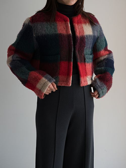 見た目にも温かみのある、上質なウールを使用したチェック柄のショートジャケット。