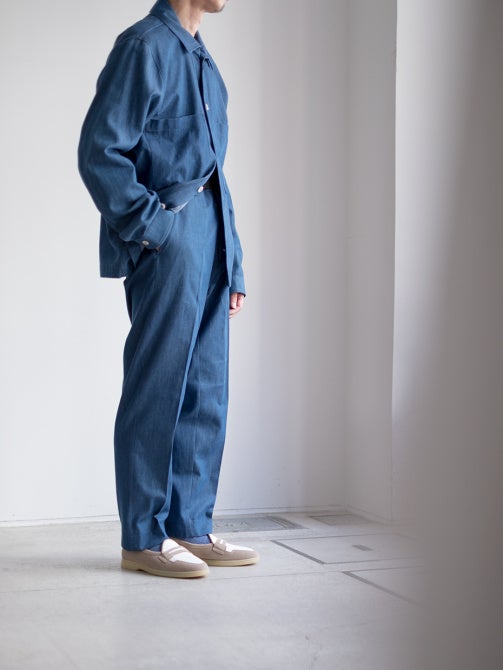 デニムに比べ、軽やかさが際立つシャンブレー生地のパンツ。リネンシャツやビッグシルエットのカットソーなどと相性が良く、リラクシーな大人のスタイリングが叶います。
