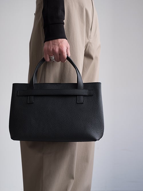 オールレザーながら重たい印象にならず、カジュアルなスタイリングでも使用できるデザインが魅力のミニトートバッグ。