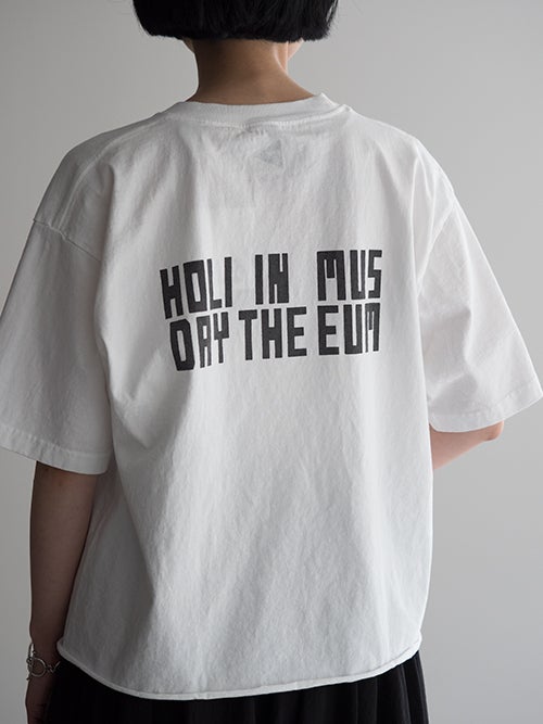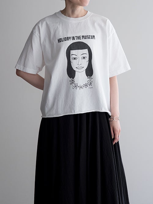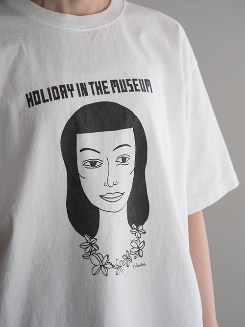 フロントにフラガールを思わせるフェイスイラストを配し、バックには「HOLIDAY IN THE MUSEUM」のロゴを大胆にあしらったデザインTシャツ。