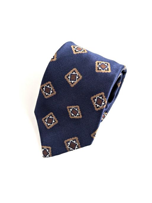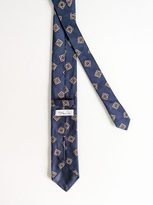 ステファノカウ シルクネクタイ 小紋柄 NAVY