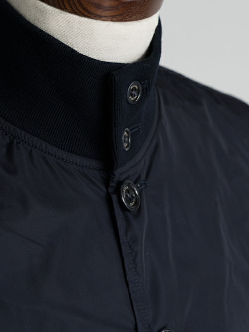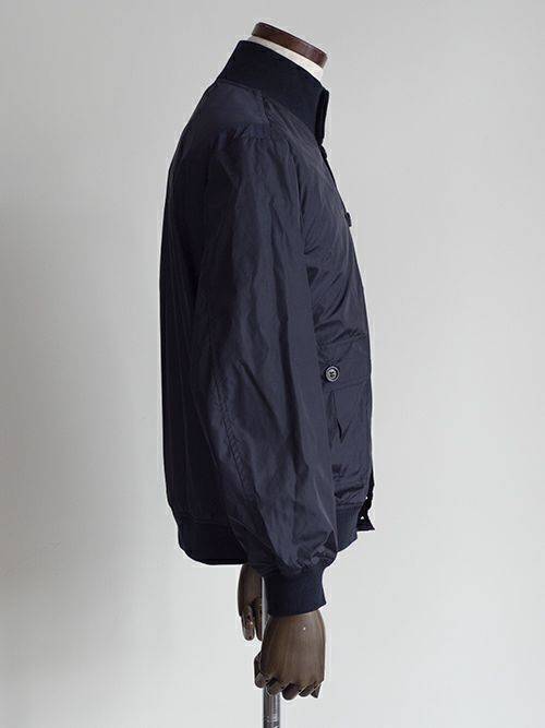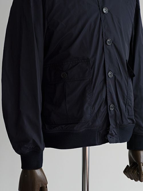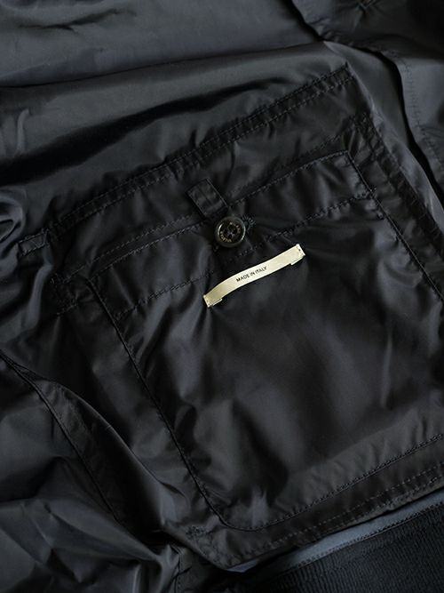 フロントの大きなポケットは、フラップを開けての使用だけでなくサイドからもハンドインできる作りになっており、利便性にも拘りが見えます。ショート丈のブルゾンはコーディネートを作る際の汎用性も高く、季節の変わり目にマストな一着。