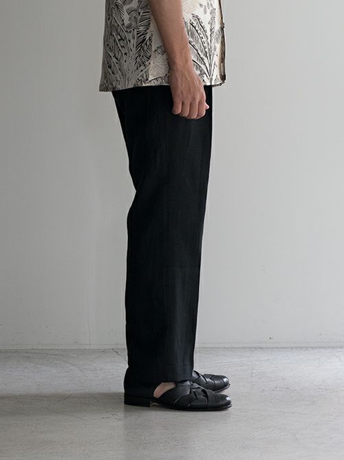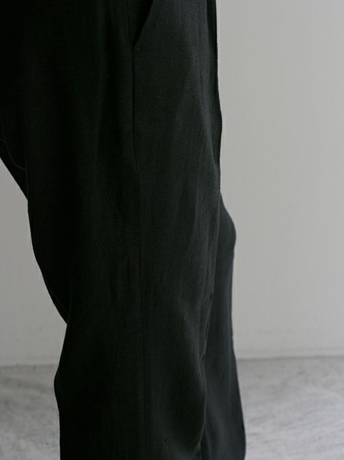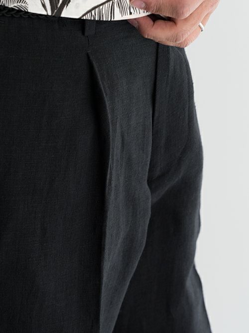 ゆとりのあるシルエットでリラックス感のあるリネンパンツ。ワンタックでヒップから渡りに余裕を持たせています。