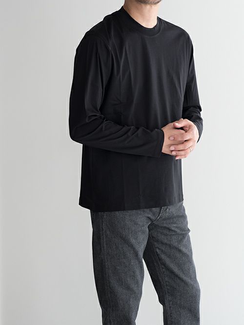 ワイドパンツに合わせたミニマムなコーディネートから、インナー使いとしても活躍する汎用性の高い一着です。