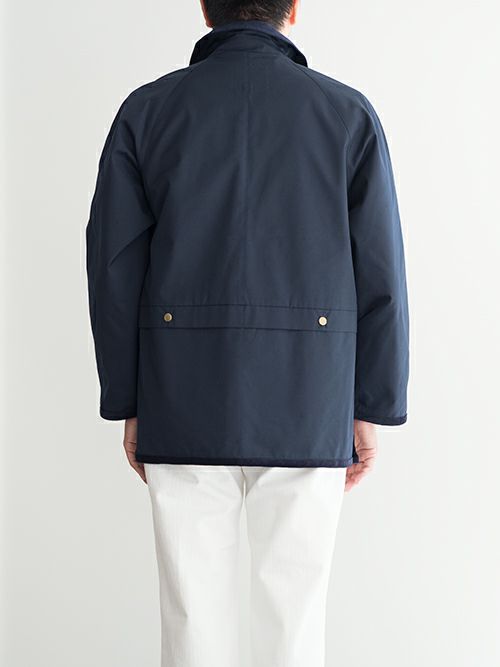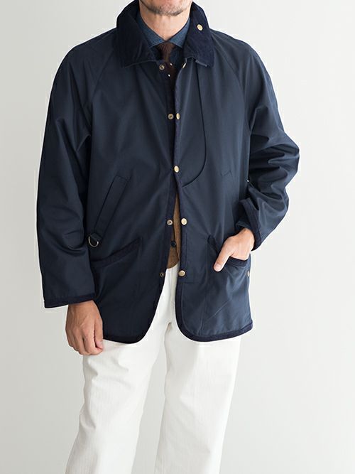 肩回りはラグランスリーブで可動域が広く、裾両サイドにはスナップ釦の脱着でスリットを作る事ができます。