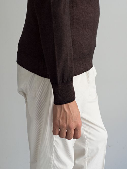 厳選されたウールを使用したシンプルなハイゲージニット。製品染めによる独特な色合いが、こなれた雰囲気を醸し出します。