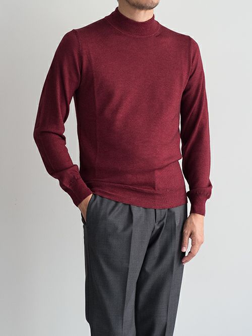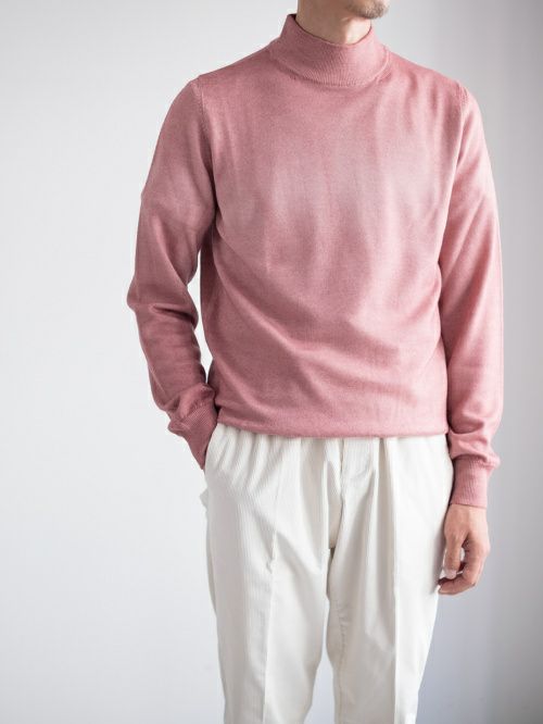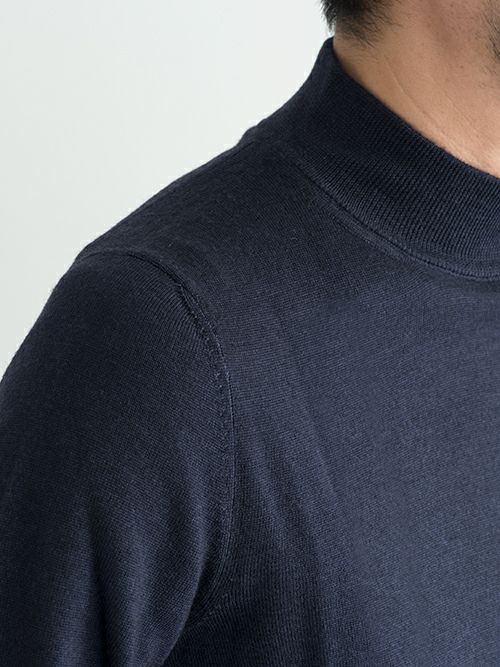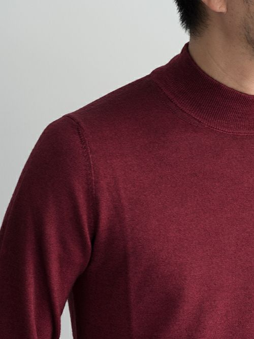 1枚でも、ジャケット等のインナーにも重宝するアイテム。モックネックが首元をこなれた雰囲気に彩ります。