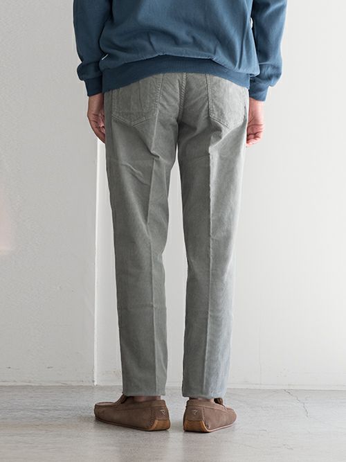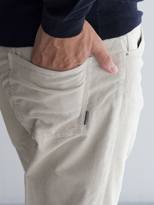 細畝のコーデュロイが上品な印象の5ポケットパンツ。温かみのある生地は、秋冬シーズンに適した一着です。