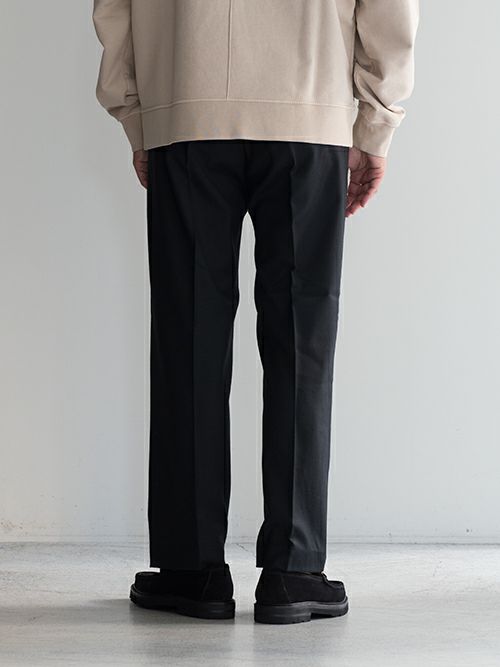 テーパードは緩やかに効かせてはいますが、どちらかというとストンと落ちたストレートに近いシルエット。こなれた雰囲気が洒落心をくすぐる一着です。