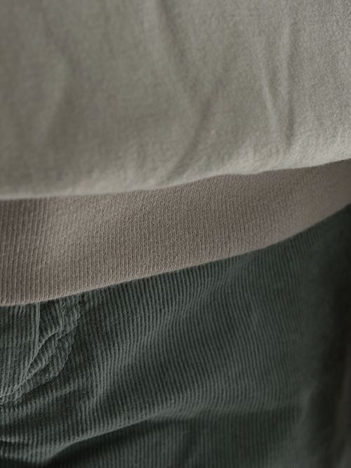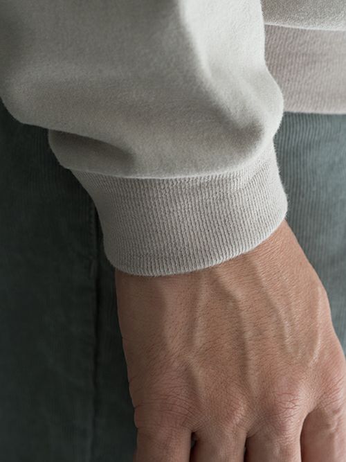 一枚でサラッと着用いただくと、適度なゆとりがこなれた雰囲気を演出してくれます。柔らかく、程よい肉感のスウェットで、冬場はインナー使いもし易い一着です。