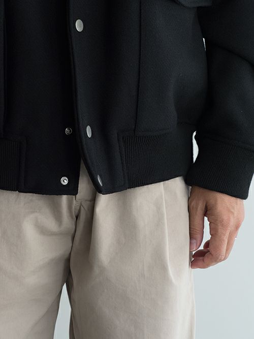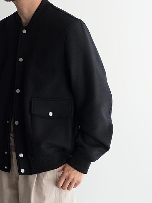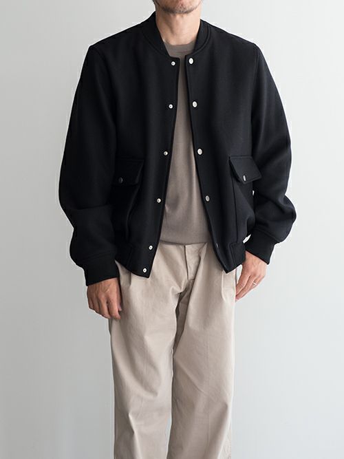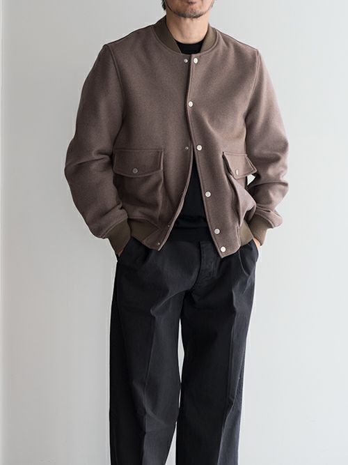 ゆとりのあるシルエットで、リラックス感のあるメルトン生地ブルゾン。計算された落ち感のあるパターンが特徴的な一着です。
