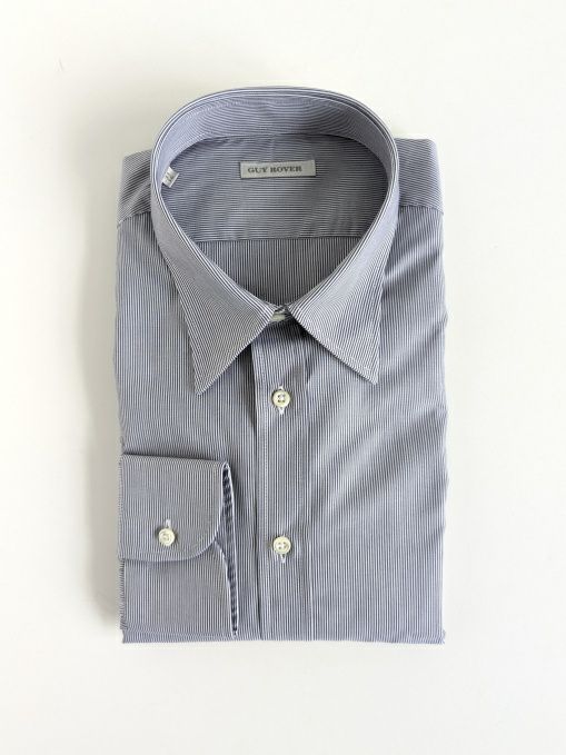 ヘアラインストライプの定番ドレスシャツ。主張しすぎないブルーが柔らかな印象の一着。また、セミワイドカラーが美しく、エレガントなタイドアップが叶います。見え方だけでなく着用感にも拘りぬいた高級感のある一着。