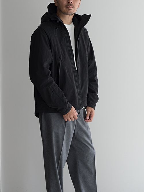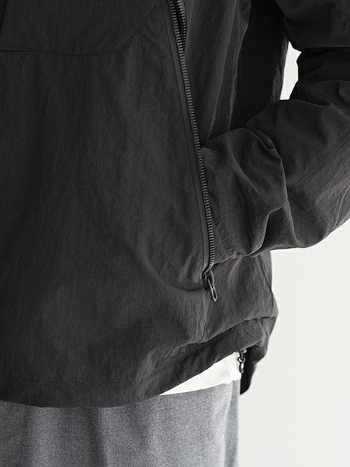 袖口のアジャスト釦や、フロントの曲線を描くダブルファスナー、止水ファスナーの各ユーティリティポケット、シルエットに変化をつける事ができるドローコードなど、機能面も充実しています。