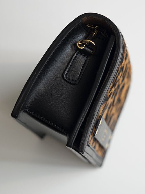 アクセサリー感覚で持てるレオパード柄のハラコ素材がポイントのバック。