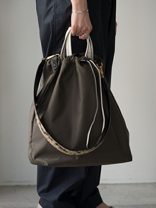 カジュアルなイメージのナイロン素材ですが、シンプルなデザインとレザー使いでスタイリングに上品さをプラスしてくれるバッグです。