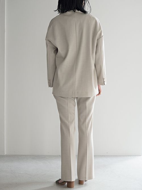 オーバーサイズのシルエットで、カーディガンのようなリラックスした雰囲気もあるジャケット。カットソーやデニムなどにさらりと合わせてこなれ感のあるスタイリングに。同素材のパンツでセットアップで着用して頂けます。
