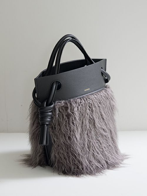 丸みのあるバケツ型のデザインにファーをあしらった季節感のあるバック。