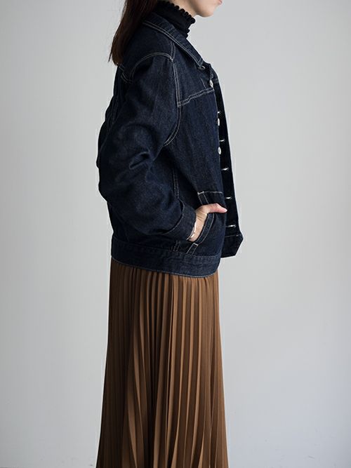 フロントのステッチや腰部分のタックなど、ありそうでない、さりげないデザインが光ります。自分らしい着こなしで楽しんでみて下さい。