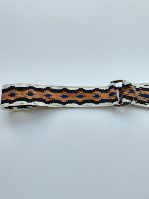 パンツにはもちろん、シンプルなシャツやワンピースのウエストマークとしてもお薦めです。比較的合わせやすいエスニックな風味もありながら、ブラックの縁取りが印象を引き締めてくれます。