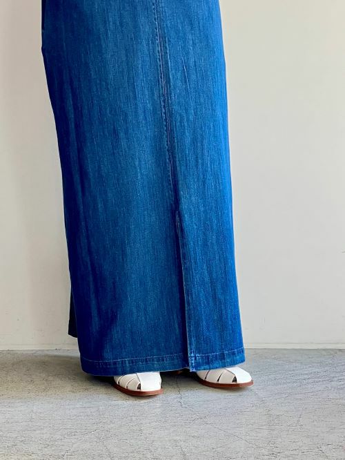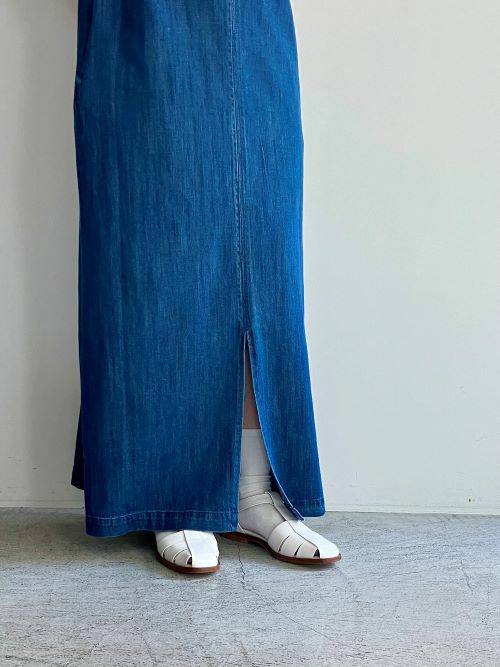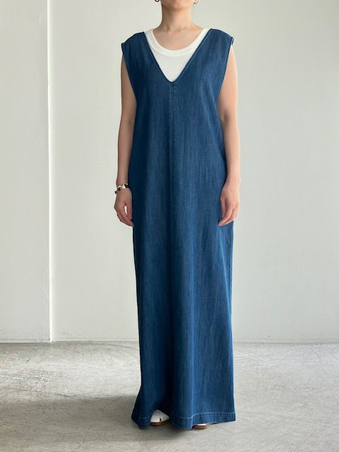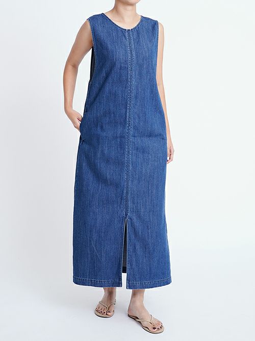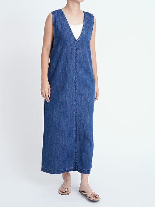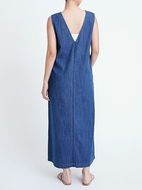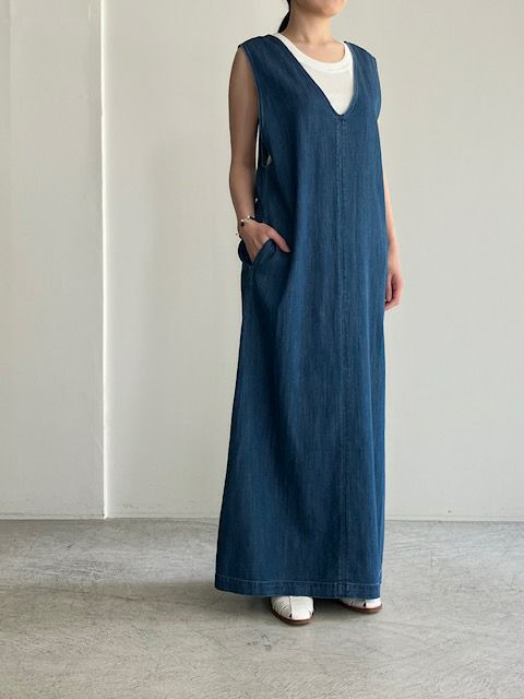 身体のシルエットを広げず、大人なリゾートスタイルを演出しています。脇が深めに開いているのでインナーを見せて、ヘルシーに女性らしくスタイリングすることができます。前後で着用が可能で、脇のポケットもそれに対応しております。