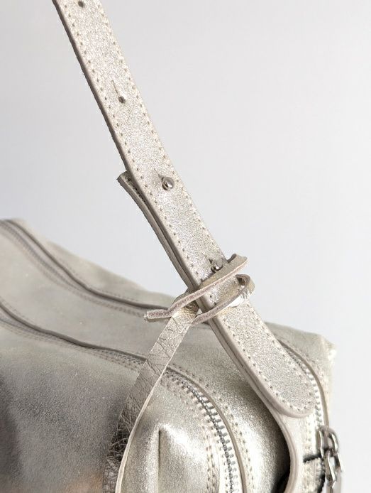 、ダブルコンパートメント仕様のスタイリッシュなバッグで、細身のレザーハンドルが全体を軽やかに引き締め、重たくなりすぎず、洗練された印象を演出します。機能性と美しさを兼ね備えた、日常に寄り添う上質なアイテムです。
