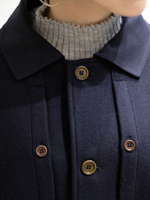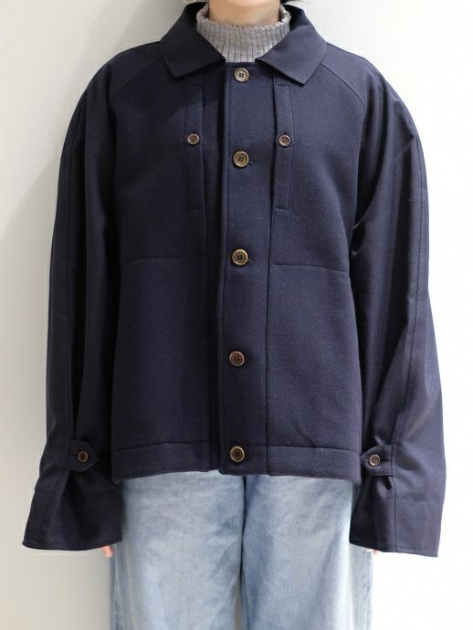 上質なウール素材を使用した、ショート丈のブルゾン。身頃はメルトン、襟と袖は綾織りの切り替えデザインで、袖のシルエットに変化をもたらすアジャスト釦仕様も魅力的なディテールの一つです。