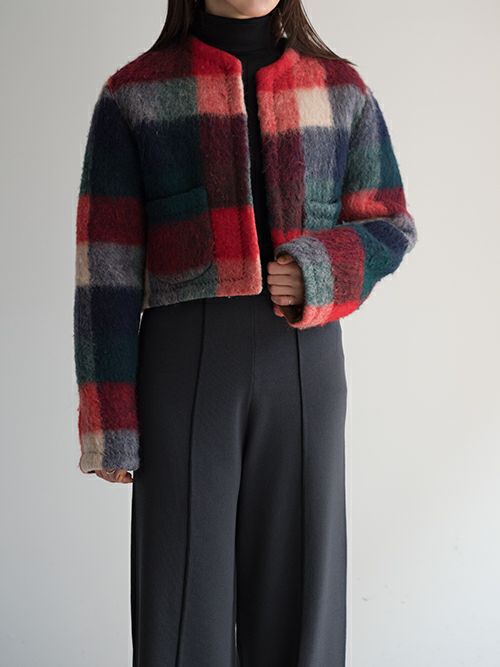 見た目にも温かみのある、上質なウールを使用したチェック柄のショートジャケット。