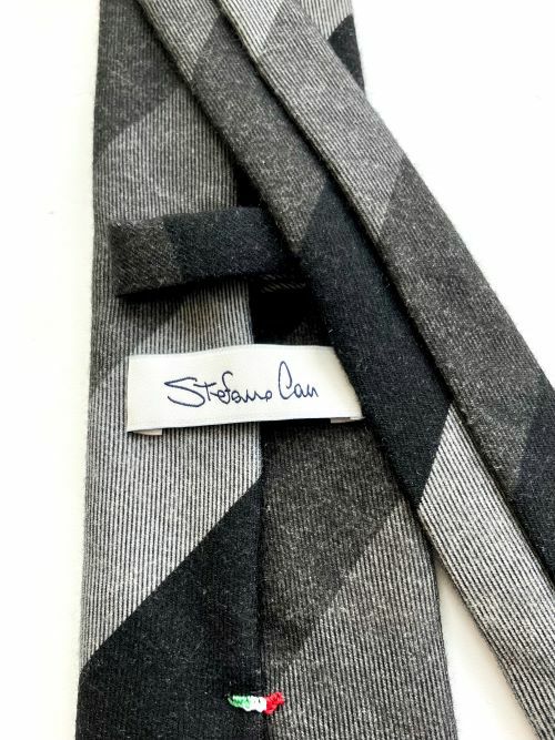 ステファノカウ ウールネクタイ レジメンタル柄 BLACK.S