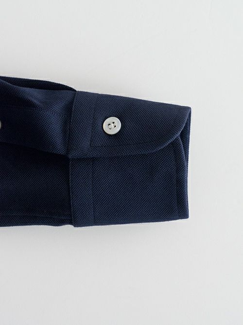 通常量産のシャツでは、生産効率のため脇縫いから袖先まで一気に縫い上げる物がほとんどですが、腕の運動量を考えた上、袖パーツを後付けし、より立体的に作り込んでいます。