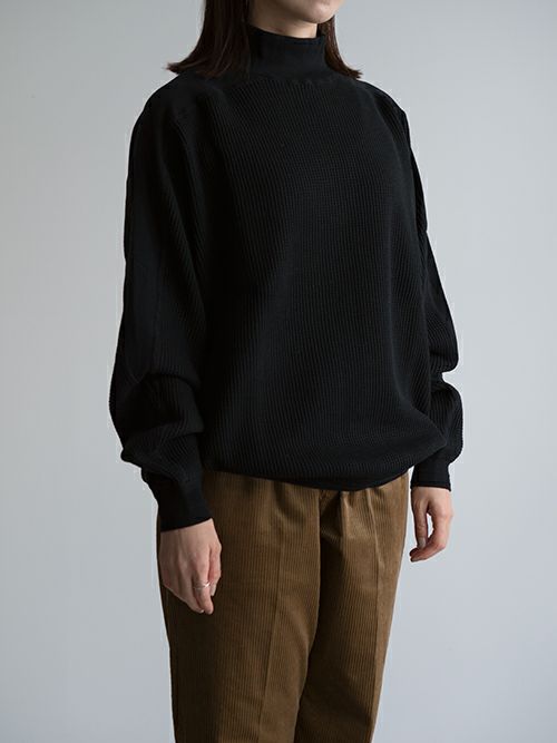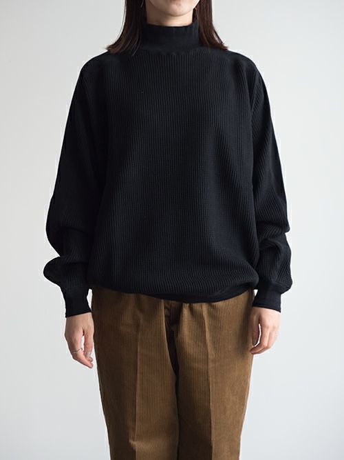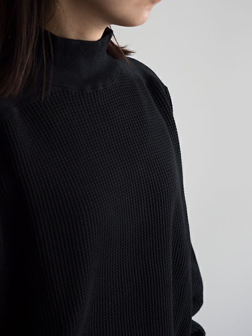 度詰とは密度を高めて生地を編みたてたもので強度があり、型崩れを防いでくれます。それをワッフル編で仕上げ、重さを感じさせないフワッとした膨らみが特徴です。