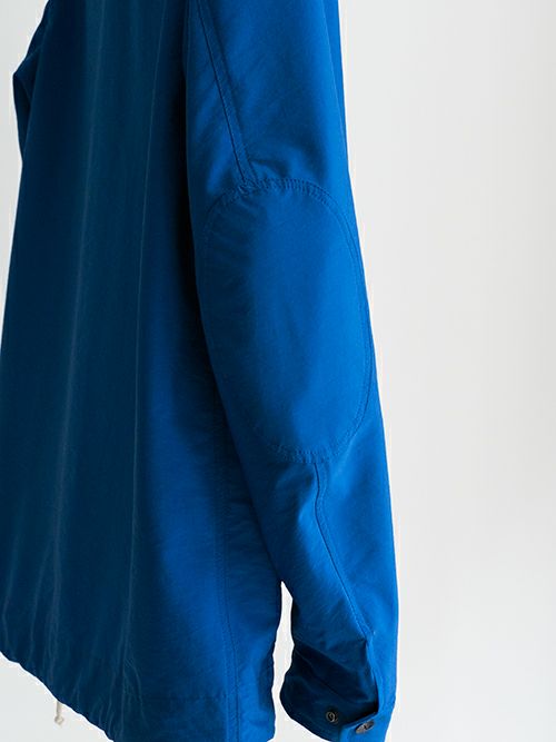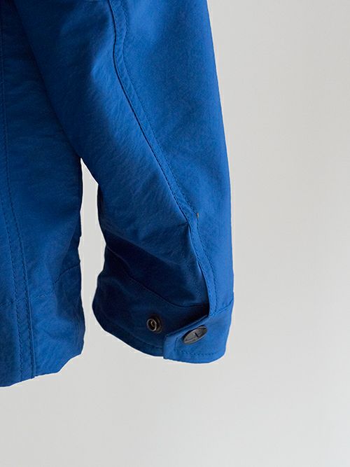 鮮やかなブルーが目を惹くミリタリーアウター。ナイロンとポリエステルの混生地で裏地は付いておらず、軽やかな羽織り心地です。