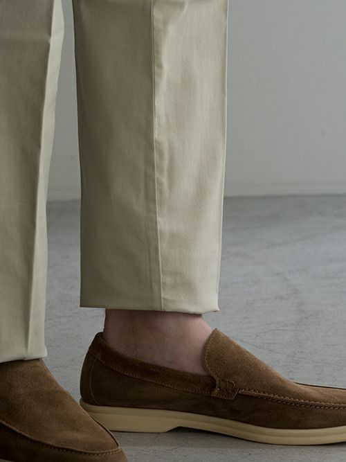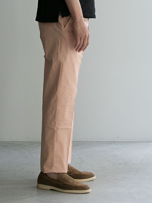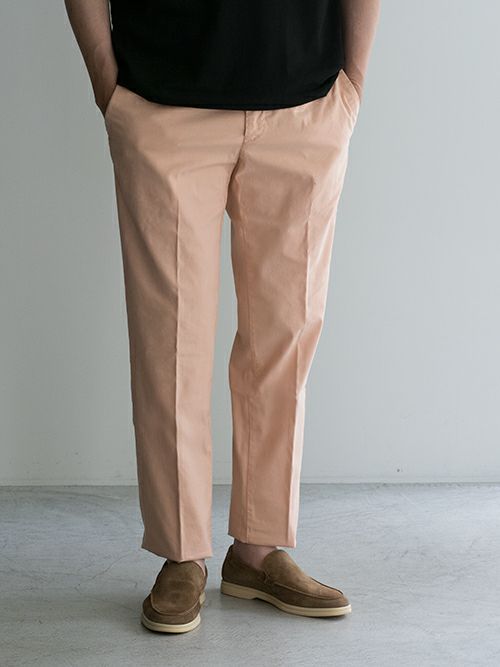 ワンプリーツで膝下から程よくテーパードさせた、イタリアブランドらしい綺麗なシルエットのコットン混一着です。