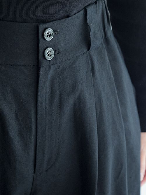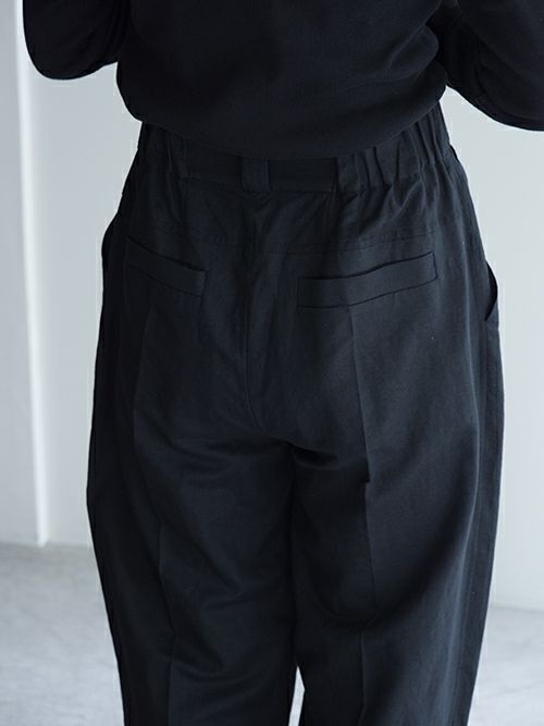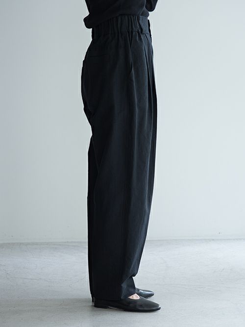 程よく張りがあって、なのに柔らかい。そんな上質な綿麻生地を使用したツータックパンツ。腰回りとワタリには余裕を持たせ、裾にかけてのテーパードシルエットです。