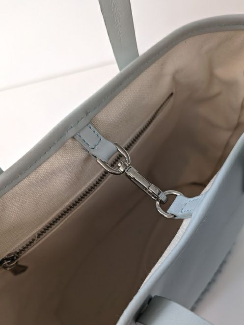 ペールトーンのミントカラーが上品なバッグ。上質なカーフレザーを使用しており、洗練された大人な印象になっています。着脱可能なレザーストラップで、コーディネートに合わせて持てるのも嬉しいポイント。内側にはファスナー付きのポケットもあり、利便性にも優れています。軽やかで涼しげな、春夏にぴったりのバッグです。