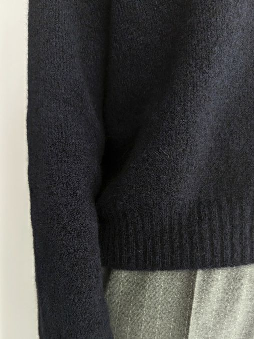 ウールとベビーアルパカの素材感が、温かみのあるやわらかな風合いで◎。ナイロンとポリウレタンも入っており、強度とストレッチ性も兼ね備えています。