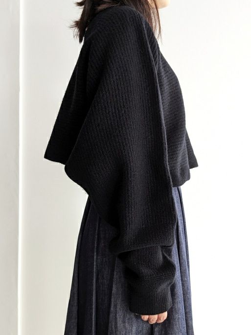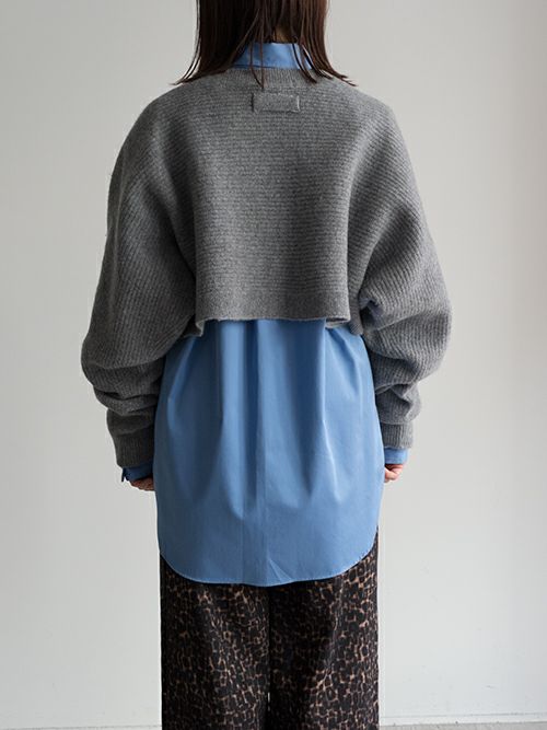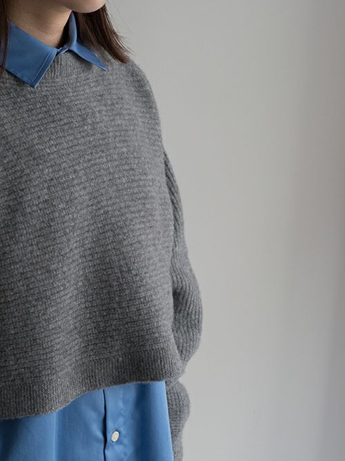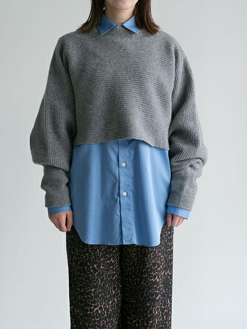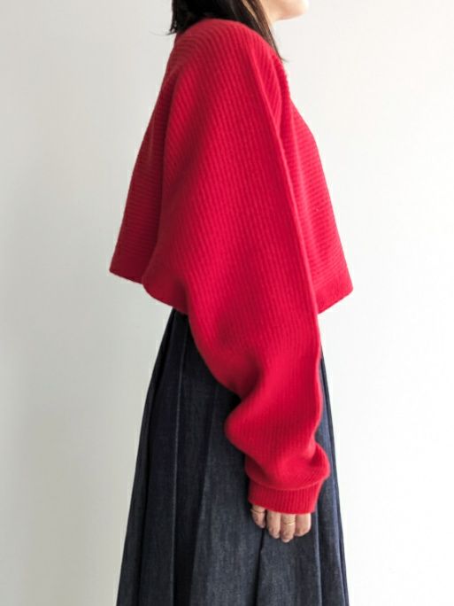 レイヤードスタイルにアクセントになるショート丈ニット。優れた保温性と軽さを兼備えたウール100%のニットを使用。滑らかな肌触りで着心地も抜群です。ロング丈のシャツをインナーにレイヤードすれば存在感のあるスタイリングになります。カットソーやハイネックなどのインナーなどをインしても表情が変わるので楽しんでいただけます。