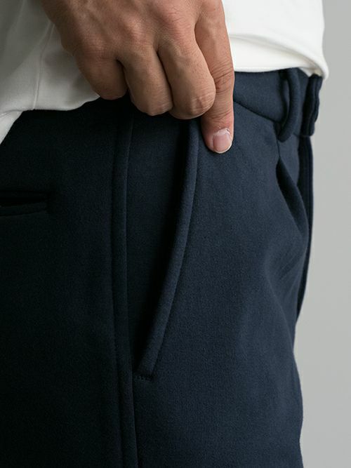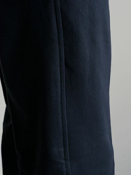スウェット素材を使用したセットアップは数多くありますが、素材特性上、どうしても保形性に難があり、一日座り仕事をしていると肘や膝が抜けてしまってだらしなく見えてしまうなど、快適な素材であるが故のデメリットもありました。