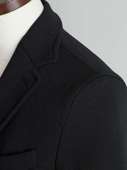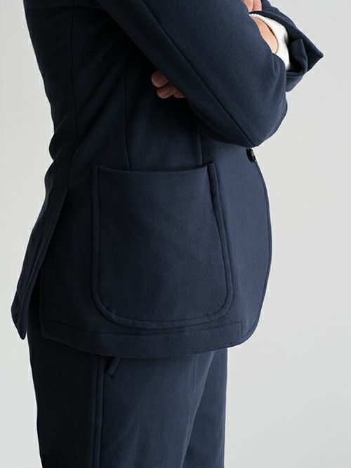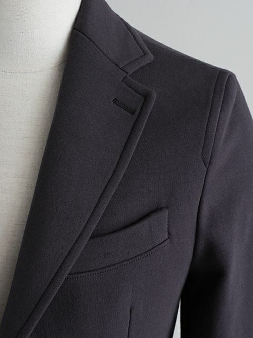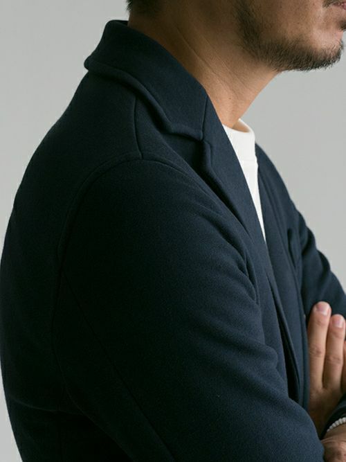 スウェット素材を使用したセットアップは数多くありますが、素材特性上、どうしても保形性に難があり、一日座り仕事をしていると肘や膝が抜けてしまってだらしなく見えてしまうなど、快適な素材であるが故のデメリットもありました。