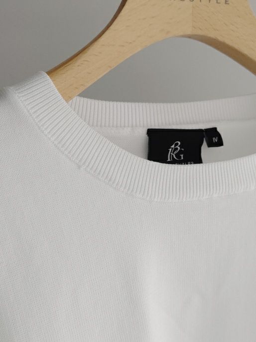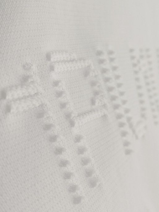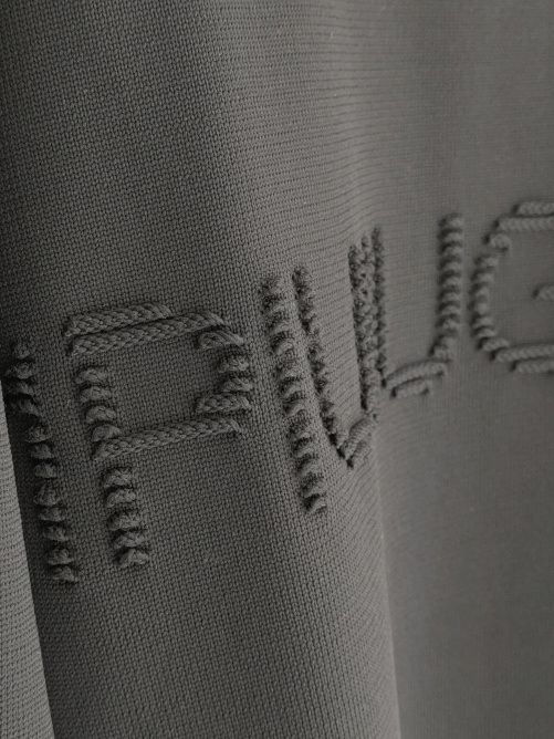フロントに同色の立体的なロゴがさり気なくポイントになっています。さらりとしたニットの質感です。