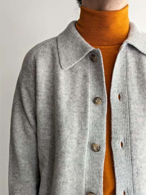 ウール100%のニットシャツ。ふんわりと柔らかく、暖かな風合いが魅力的な一着です。