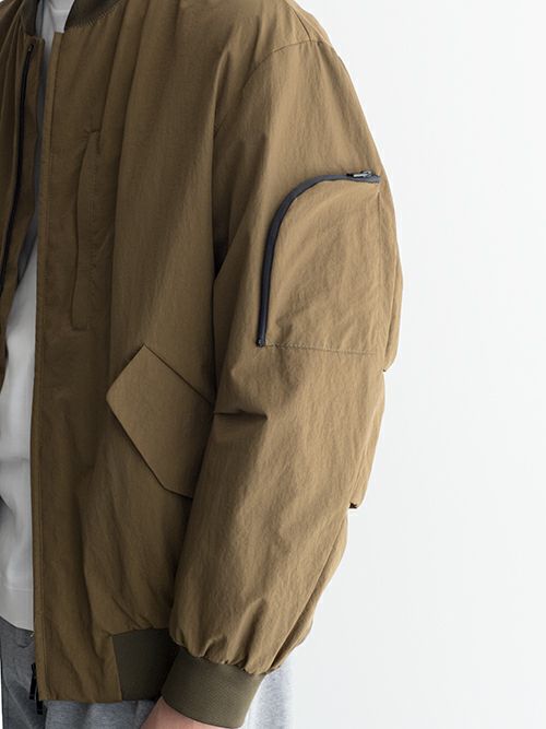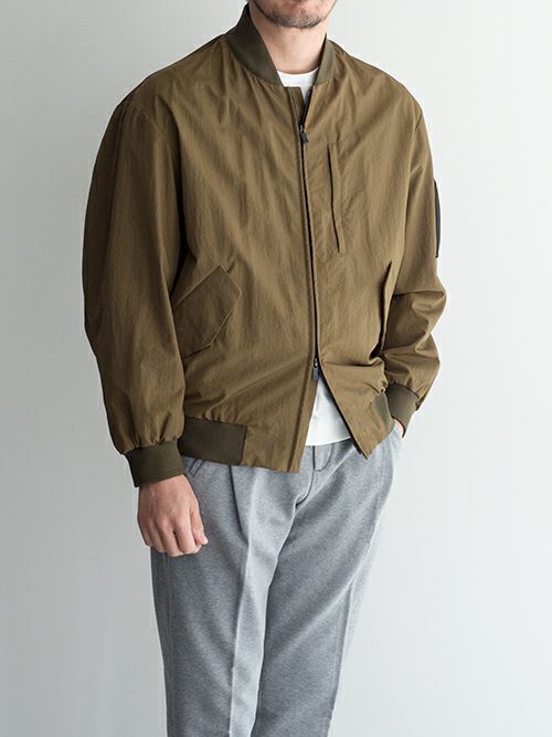 左腕のシガレットポケットや、70年代以降のMA-1を象徴するフラップ付きポケットなど、印象的なディテールは踏襲しつつも、ダブルジッパー仕様やトレンドをおさえたゆとりのあるシルエットに、Hevoならではの洒落た雰囲気を感じる一着です。