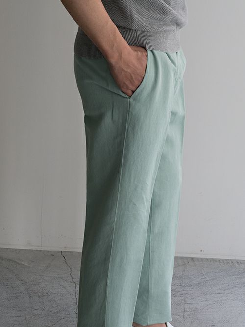 ワンプリーツで膝下から程よくテーパードさせた、イタリアブランドらしい綺麗なシルエットのコットンリネンパンツ。通気性が良く春夏シーズンに適しており、シャツをインした際の腰回りもスマートに見える一着です。