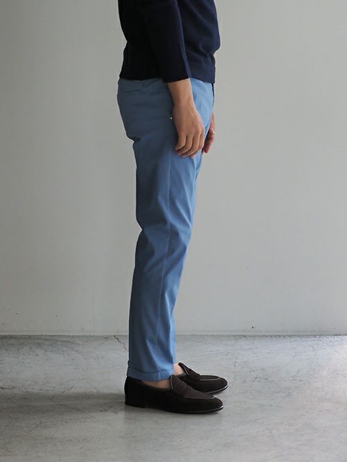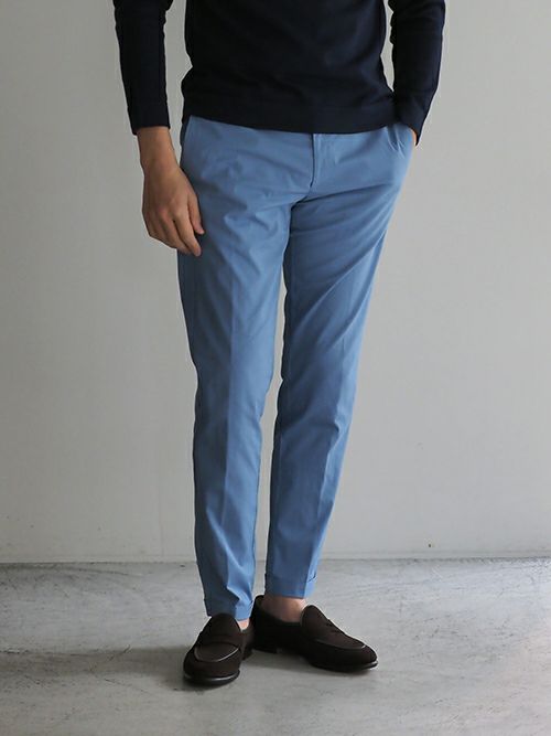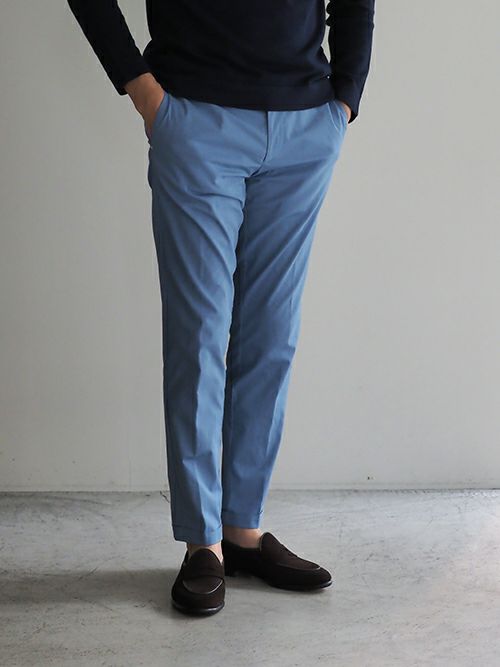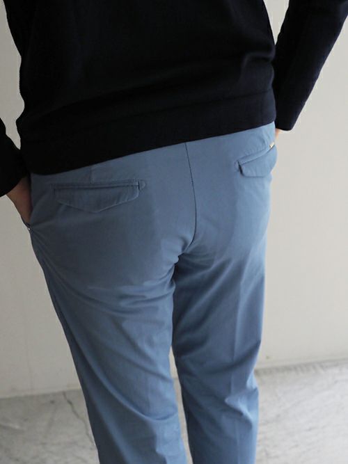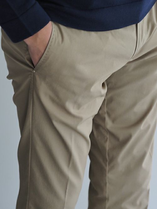 すっきりした腰回りと裾のシルエットながら、ストレッチが効いているため窮屈さを感じずに着用いただけます。