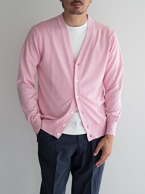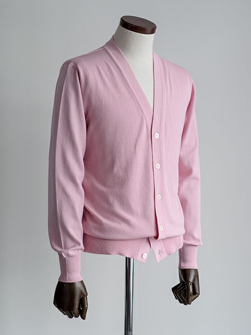 春らしい柔らかな色合いのニットカーディガン。季節の変わり目には羽織として着用でき、インナーとしてもコーディネートに華を添える事のできる一着です。