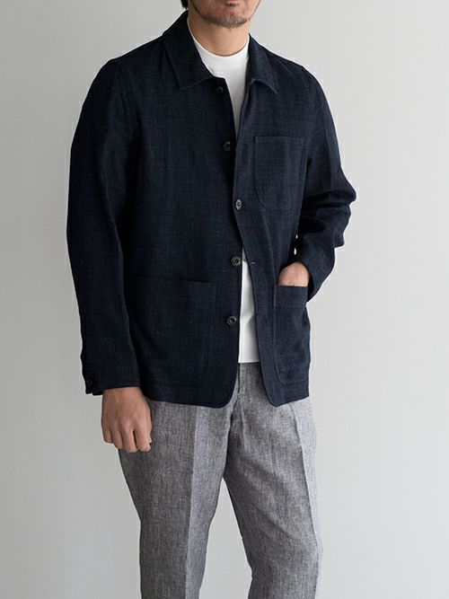 ウールリネン混のシャツジャケット。上質で軽やかな生地感が魅力的な一着です。