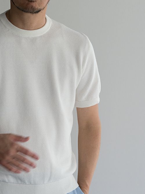 自然なリラックスシルエットのショートスリーブニット。カットソーの代わりに気軽に着ていただければ、カジュアル過ぎない大人のコーディネートを演出できます。