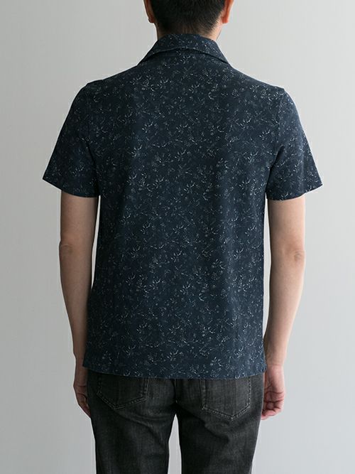 上品な印象の総柄ポロシャツ。ナチュラルストレッチの効いた綿生地で、柔らかく肌触りの良い着用感です。