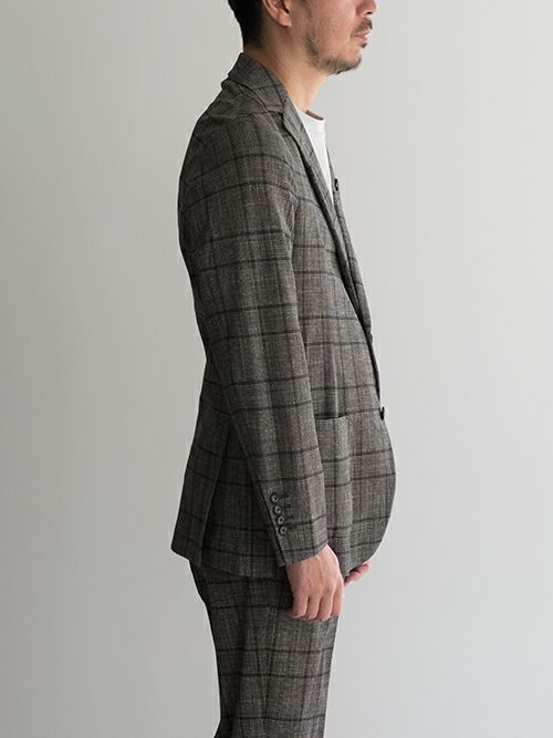 チルコロらしいストレッチの効いた2Bコットンジャケットは、伸縮性に優れた快適な着心地が魅力。統一感のあるお色のチェック柄も好印象で、カットソーやカジュアルシャツ、コットンニットなど様々なインナーと相性良くコーディネートしていただけます。